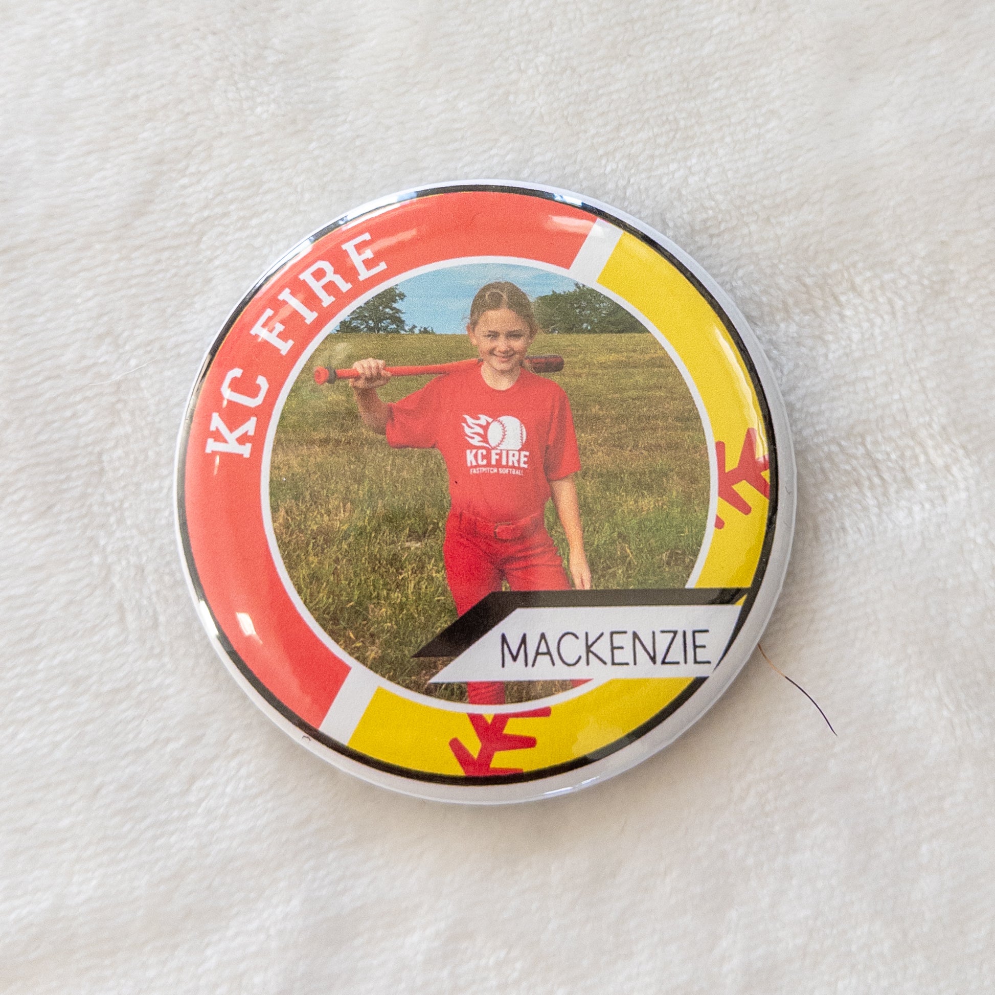 Cheer on your athlete in style with a custom 3" sports pin made just for you! These personalized pins are the perfect accessory for game day — pin them on your backpack, purse, or jacket to show off your favorite player.