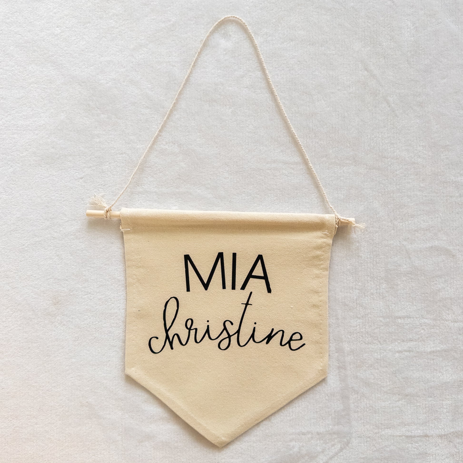 Hang up this custom pennant easily anywhere with the wooden stick and string that comes with it. It's a great gift or a nice touch for a nursery, bedroom, or any spot in your home!