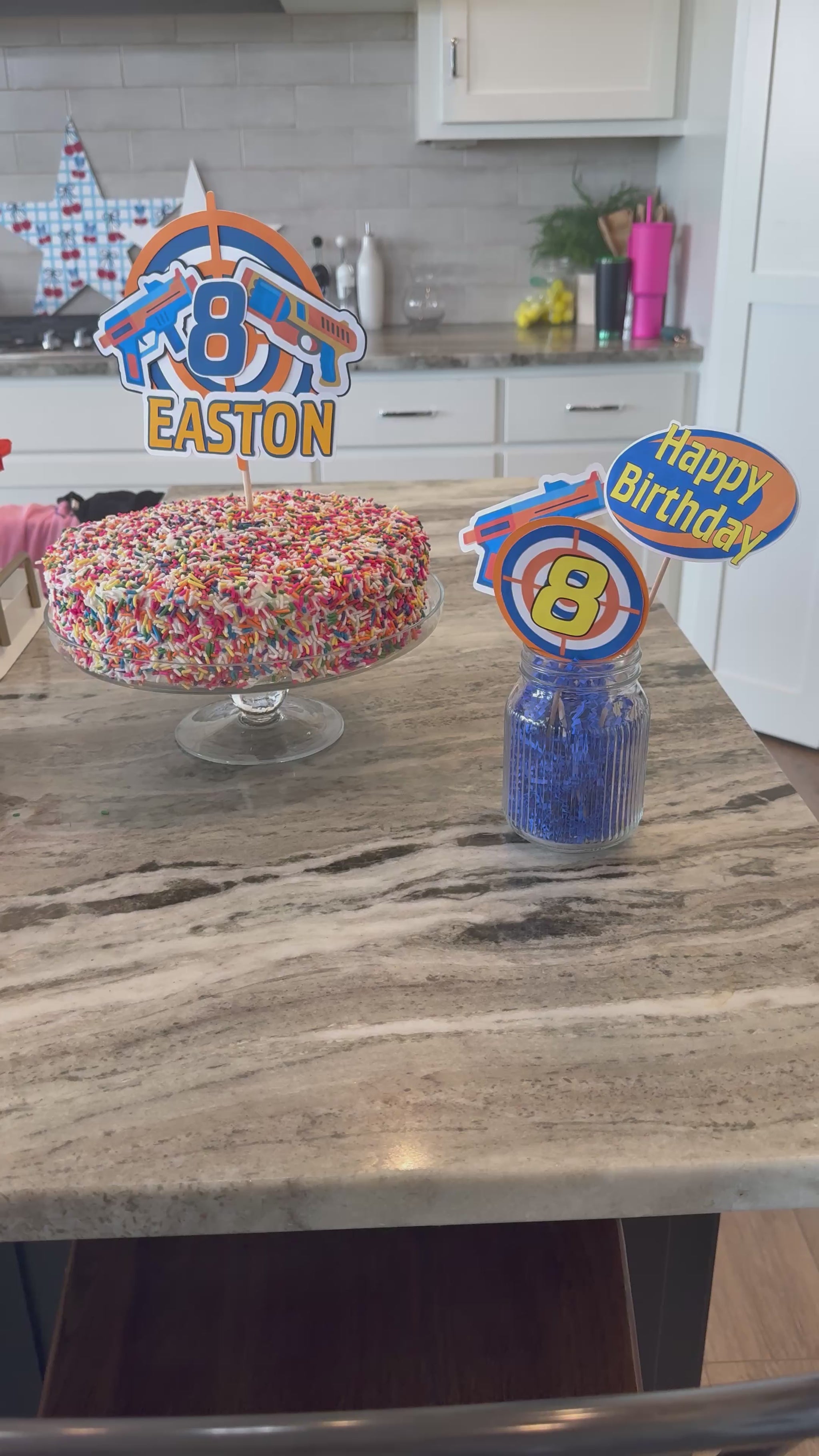 Whether you're hosting a backyard foam dart battle or a themed party indoors, this topper adds the perfect final touch to your cake!