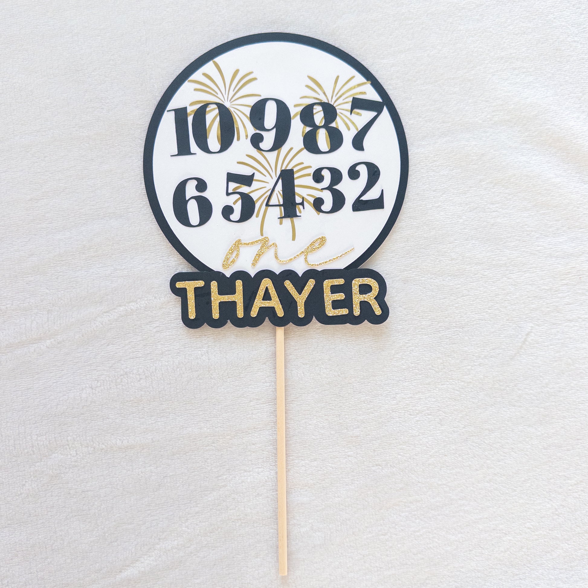 Each topper is custom made just for your child, featuring their name and a design that perfectly fits a New Year’s Eve birthday celebration.