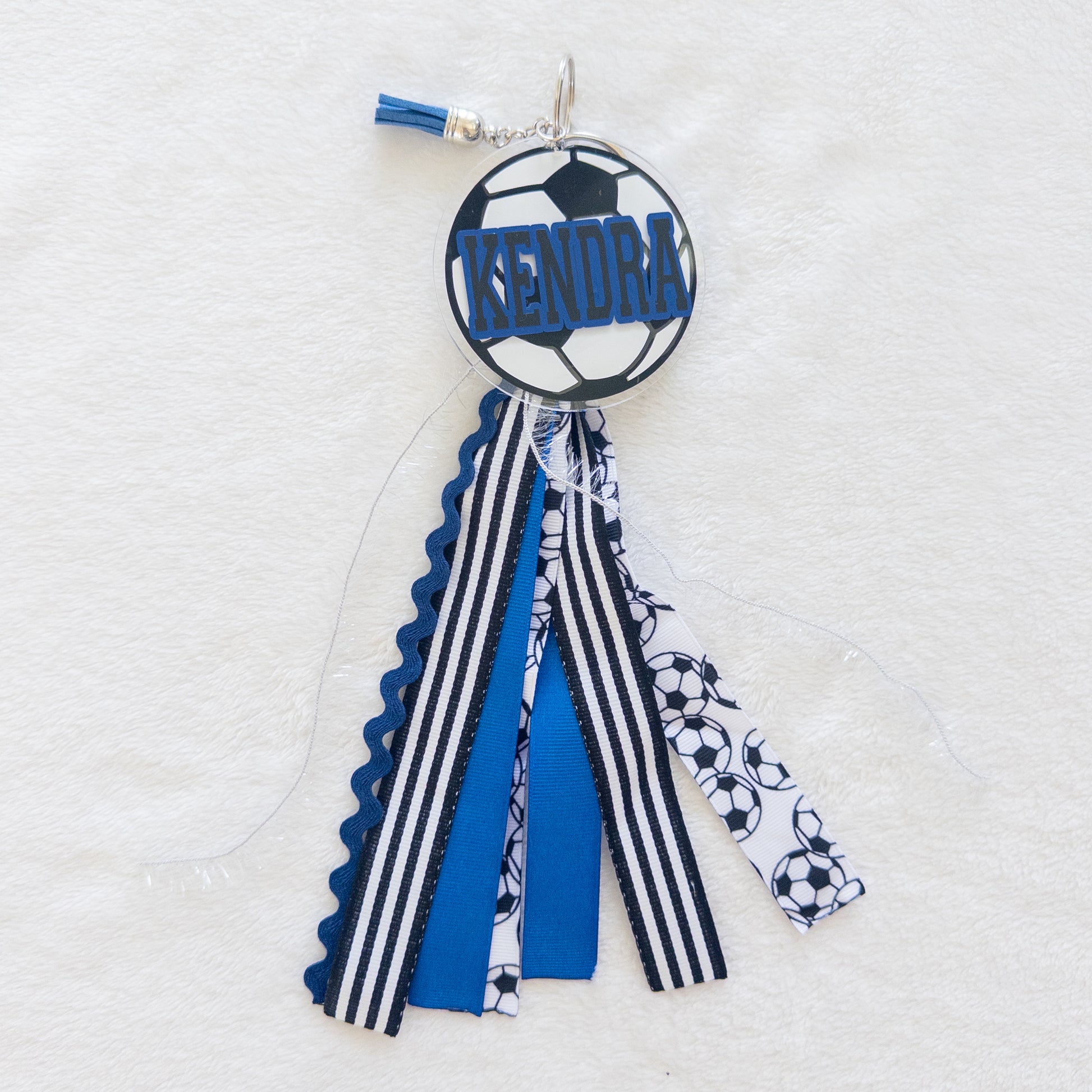 Personalized Soccer Name Keychain with ribbon for Backpacks, Sports Bags, Luggage