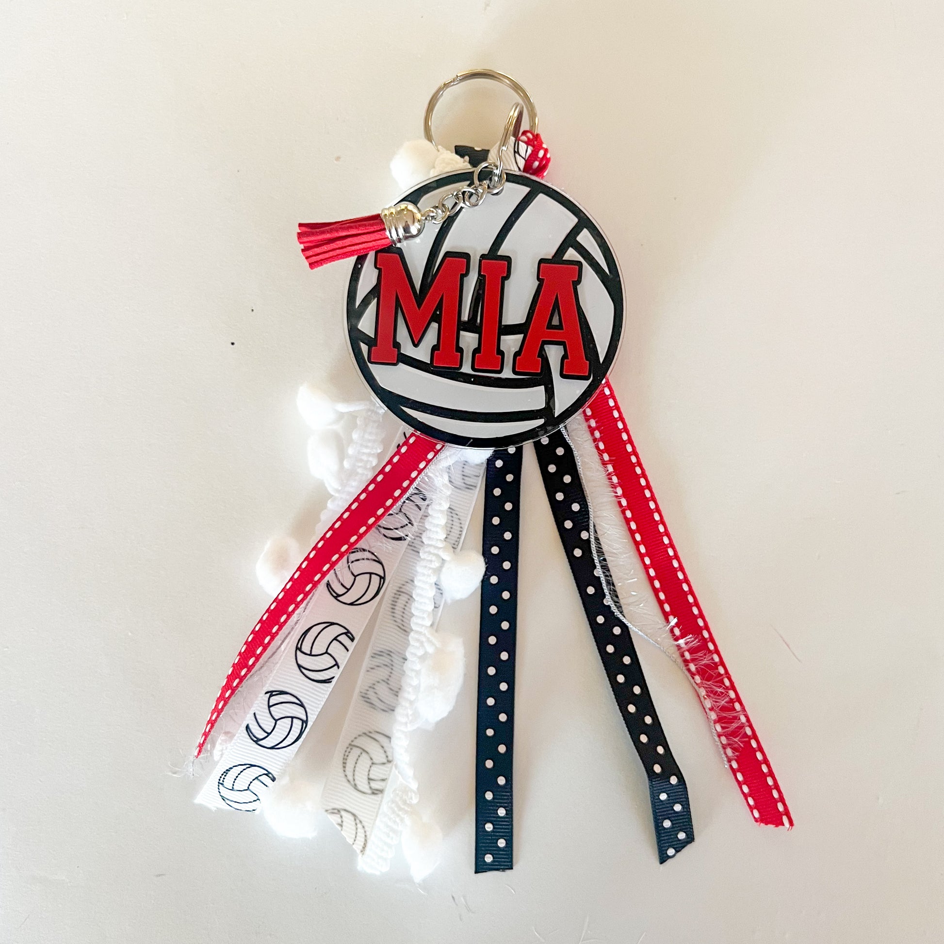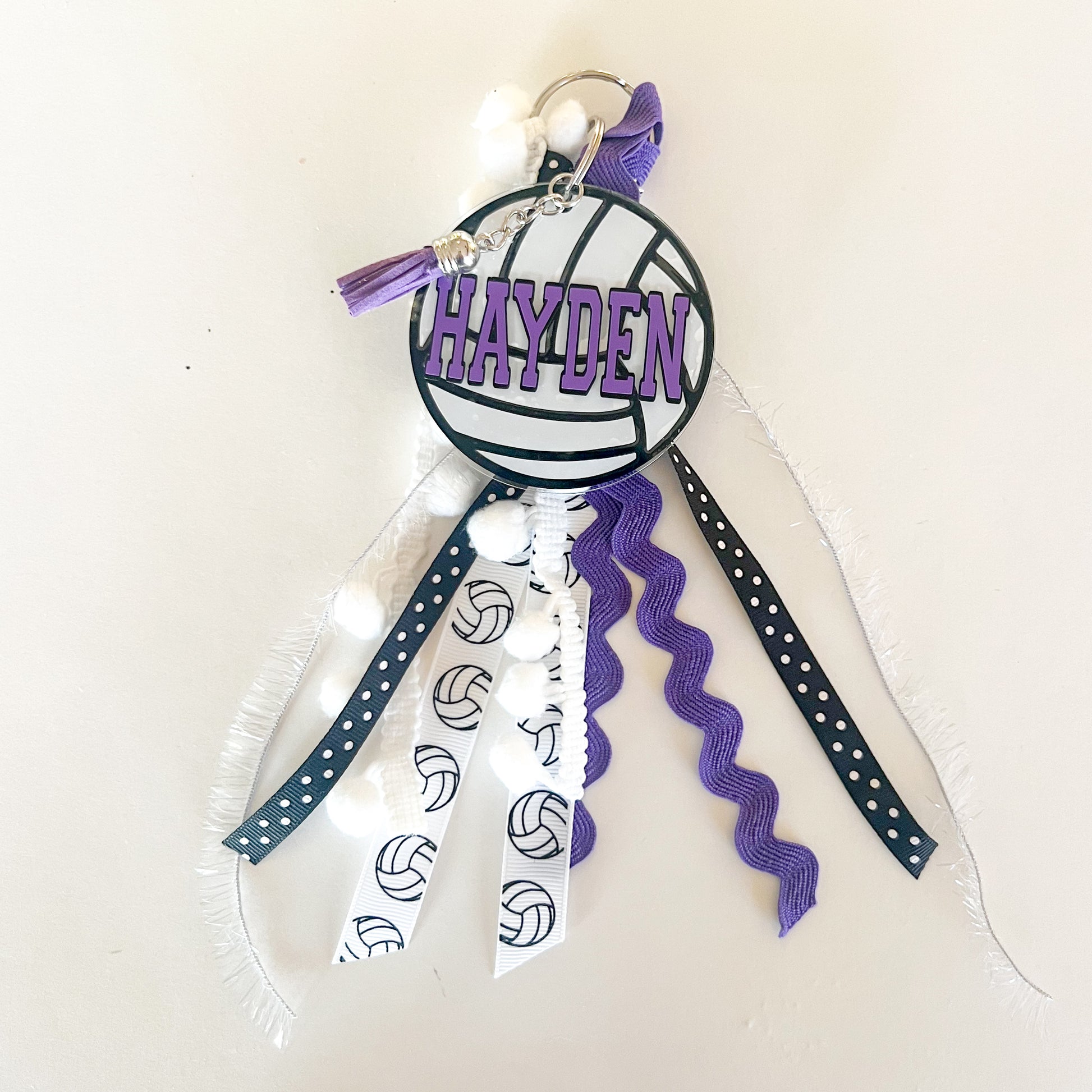 Personalized Volleyball Name Keychain with ribbon for Backpacks, Sports Bags, Luggage