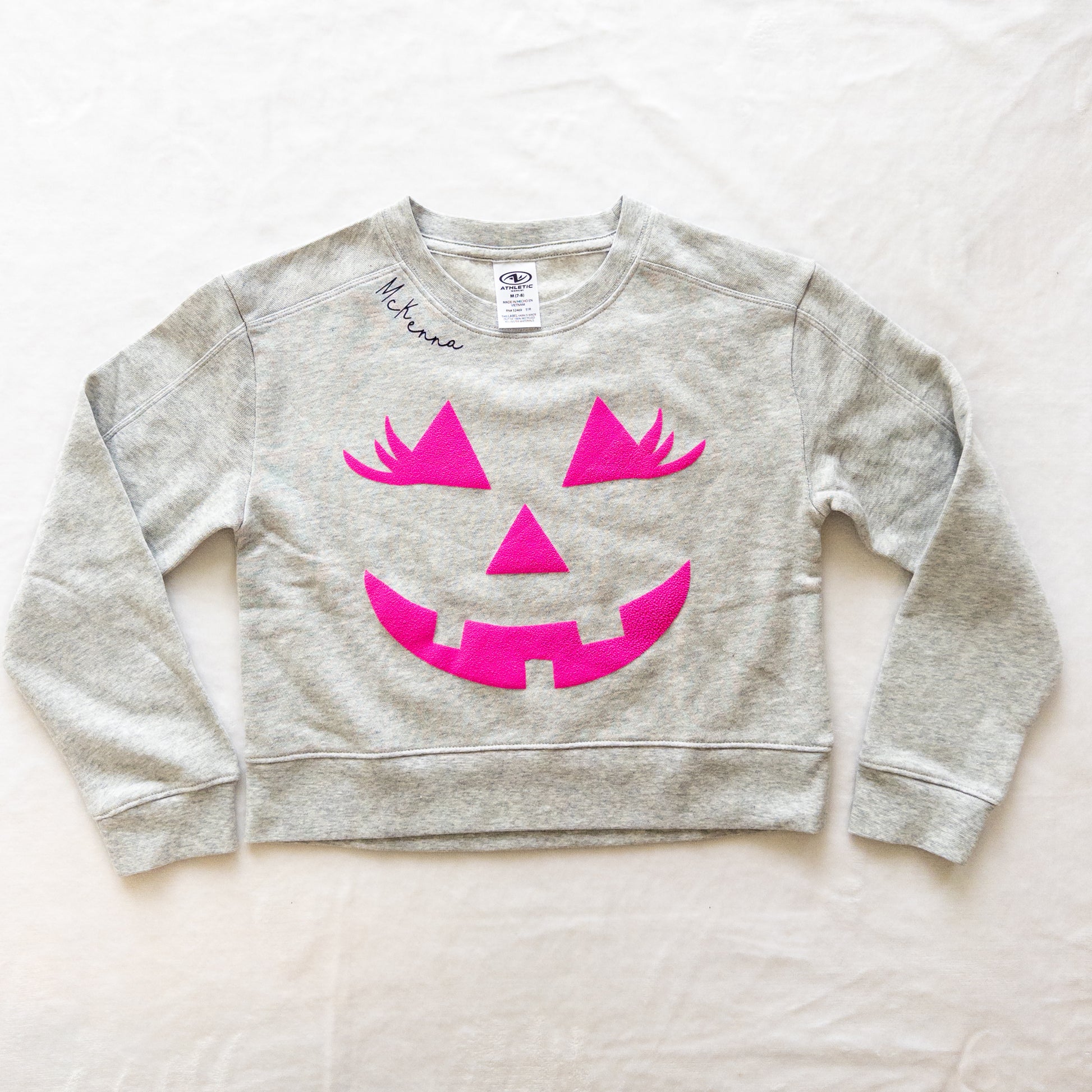 Jack-o’-lantern puff vinyl design on the front