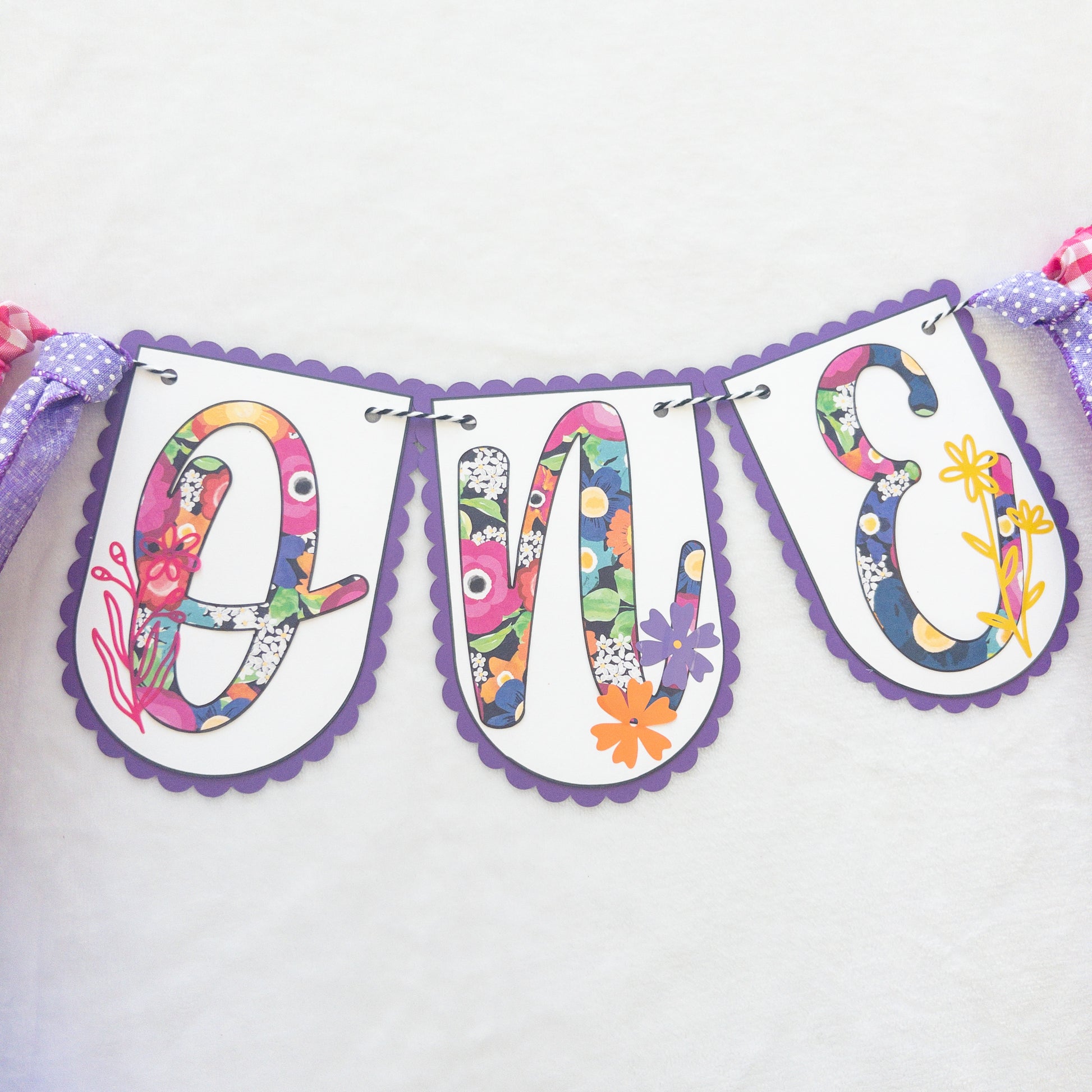 The ONE banner letters are approximately 5” tall. They are made out of high quality card stock. They are strung on twine. You can request a different theme, colors, and number.